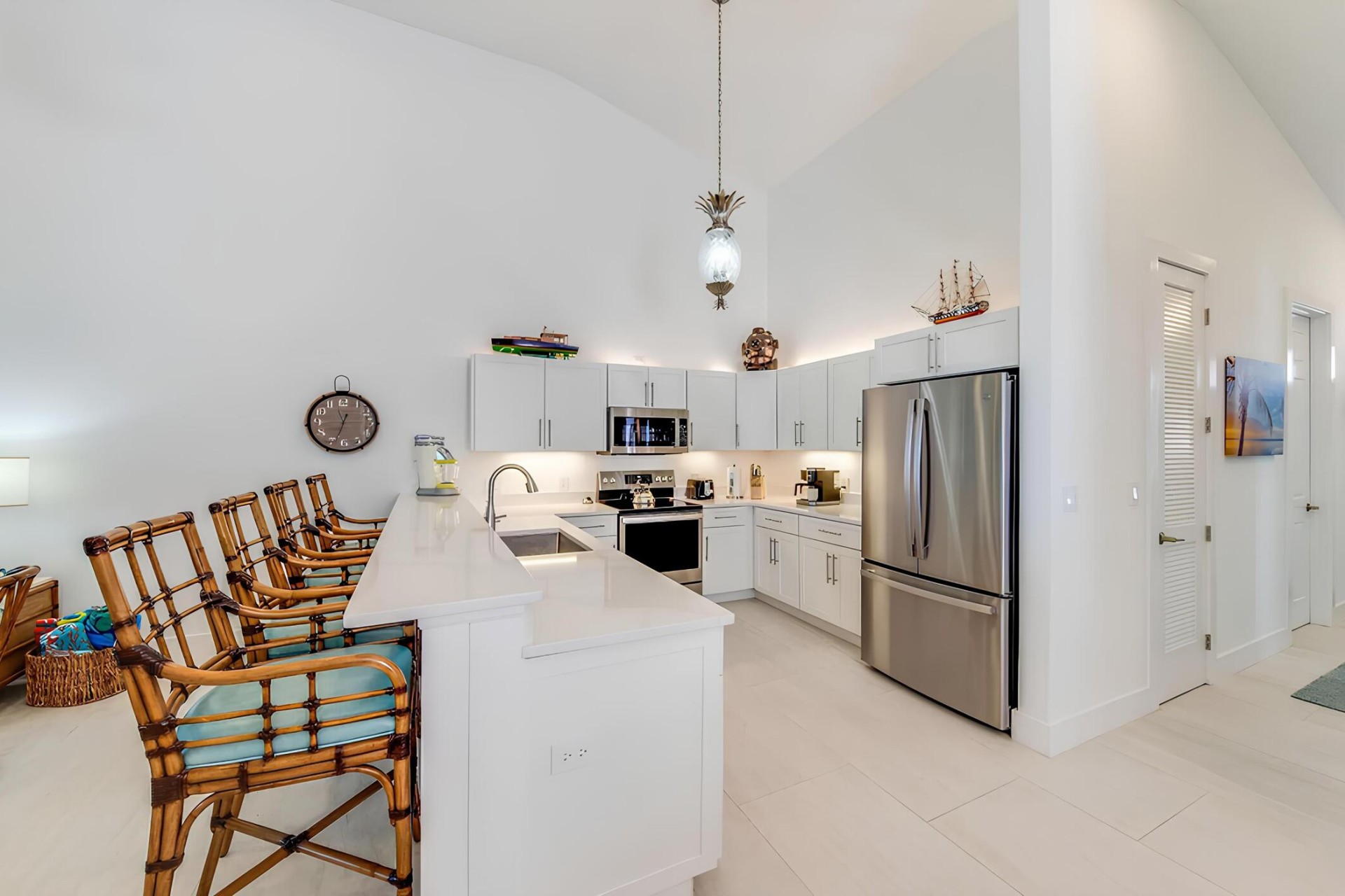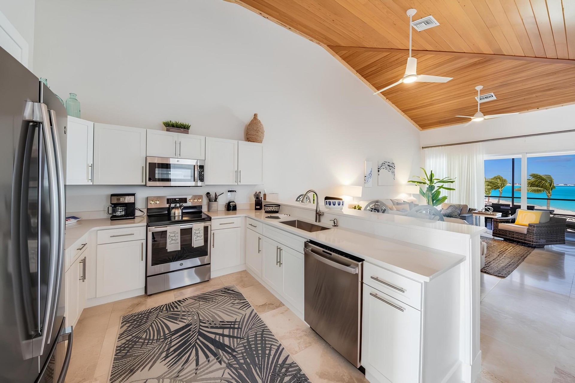 Les appartements, très spacieux et à la décoration à la fois simple et raffinée, mettent en valeur les nuances de bleu, de turquoise et de sable, rappelant la beauté environnante. Tous sont dotés de grandes baies vitrées pour profiter au maximum du soleil des Bahamas.
