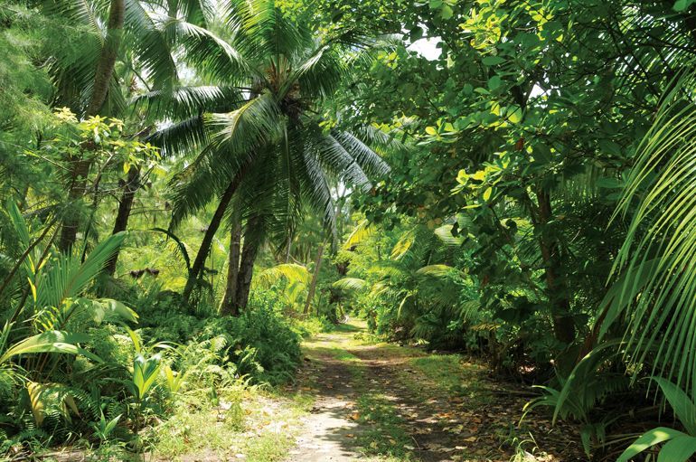 Desroches Island est le paradis des activités outdoor. Avec ses 6 kilomètres de long pour 1 kilomètre de large, l'île se découvre particulièrement bien à pied ou à vélo. Nous avons notamment eu l'occasion d'emprunter le plus long sentier, celui qui permet de traverser toute l'île jusqu'à la pointe Hélène, où se situe le fameux phare de Desroches. Ce sentier nous a permis d'évoluer au cœur de la végétation luxuriante de l'île, au milieu des cocotiers, des takamakas et des filaos.
