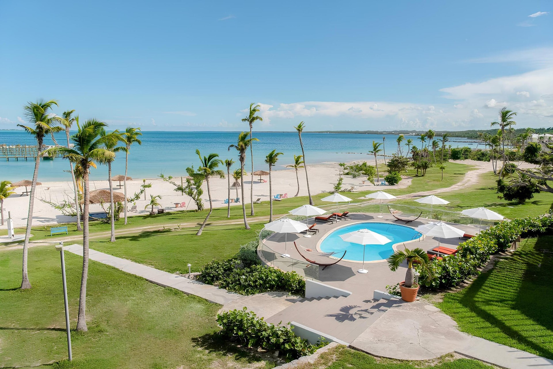 un beau domaine avec sa piscine face à la plage